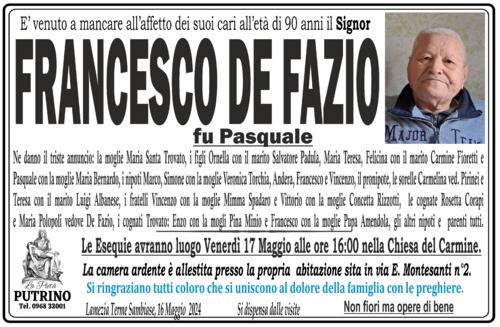 e Maria Polopoli vedove De Fazio, i cognati Trovato: Enzo con la mogli Pina Minio e Francesco con la moglie Pupa Amendola, gli altri nipoti e parenti tutti.