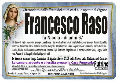 Le Esequie avranno luogo Domenica 15 Agosto alle ore 17:00 nella Chiesa della Madonna del Carmine.