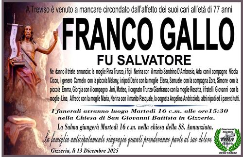 I funerali avranno luogo Martedi 16 c.m. alle ore15:30