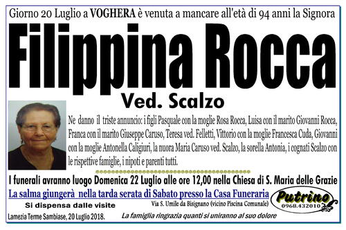 I funerali avranno luogo Domenica 22 Luglio alle ore 12,00 nella Chiesa di S. Maria delle Grazie
