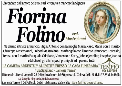 Lamezia Terme, lì 26 Febbraio 2026 - si dispensa dalle visite - Non fiori ma opere di bene.