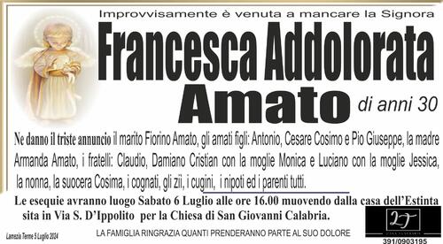 Ne danno il triste annuncio il marito Fiorino Amato, gli amati figli: Antonio, Cesare Cosimo e Pio Giuseppe, la madre
