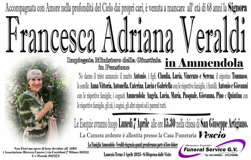 La Famiglia Ammendola - Veraldi ringrazia quanti prenderanno parte al loro dolore