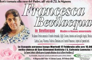 Ieri è tornata alla casa del Padre, all’ età di 72, la Signora Bevilacqua Francesca