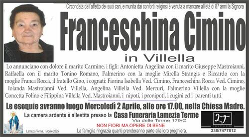 Lo annunciano con dolore il marito Carmine, i figli: Antonietta Angelina con il marito Giuseppe Mastroianni,