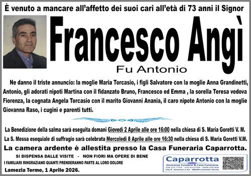 Ne danno il triste annuncio:la moglie Maria Torcasio, i figli Salvatore con la moglie Anna Grandinetti, Antonio, gli adorati nipoti Martina con il fidanzato Bruno, Francesco ed Emma , la sorella Teresa vedova Fiorenza, la cognata Angela Torcasio con il marito Giovanni Anania, il caro nipote Antonio con la moglie Giovanna Raso, i cugini e parenti tutti.