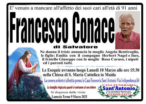 Ne danno il triste annuncio la moglie Angela Bentivoglio, le figlie: Emilia con il compagno Herbert Nagel e Ines, il fratello Giuseppe con la moglie Rosa Caruso, i nipoti ed i parenti tutti.