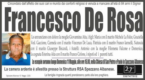 Lo annunciano con dolore la moglie Giovannina Aita, i figli: Maria con il marito Michele La Falce, Graziella