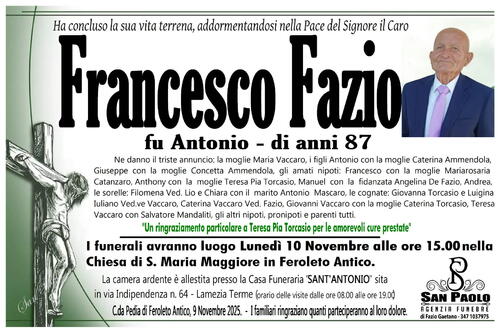 C.da Pedia di Feroleto Antico, 9 Novembre 2025. - I familiari ringraziano quanti parteciperanno al loro dolore.