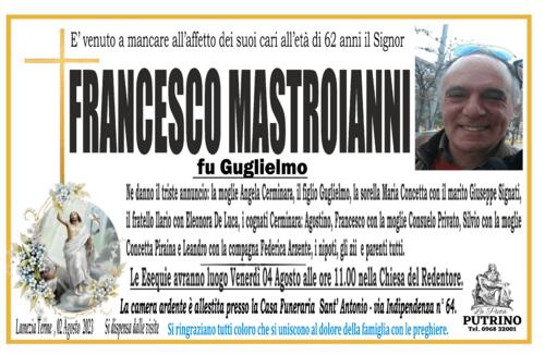 Ne danno il triste annuncio: la moglie Angela Cerminara, il figlio Guglielmo, la sorella Maria Concetta con il marito Giuseppe Signati,