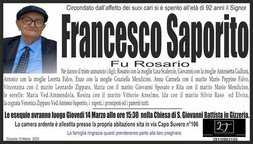 la cognata Veronica Zipparo Ved.Antonio Saporito, i nipoti, i pronipoti ed i parenti tutti.