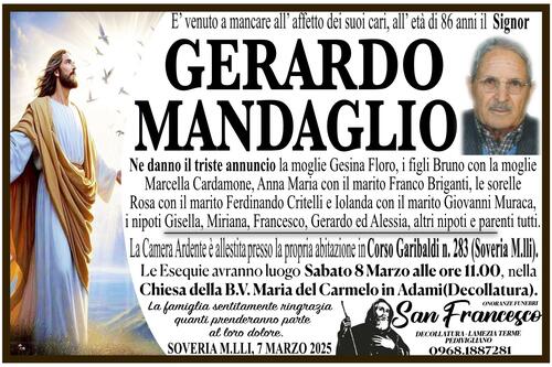 Ne danno il triste annuncio la moglie Gesina Floro, i figli Bruno con la moglie Marcella Cardamone, Anna Maria con il marito Franco Briganti, le sorelle