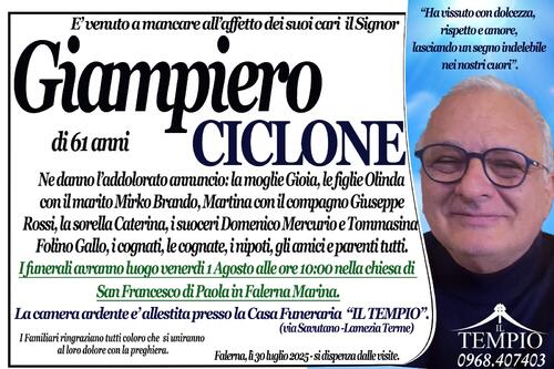 al loro dolore con la preghiera.Falerna, lì 30 luglio 2025 - si dispenza dalle visite.
