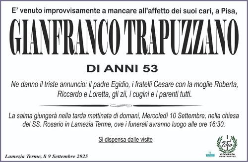 La salma giungerà nella tarda mattinata di domani, Mercoledì 10 Settembre, nella chiesa del SS. Rosario in Lamezia Terme, ove i funerali avranno luogo alle ore 16:30.
