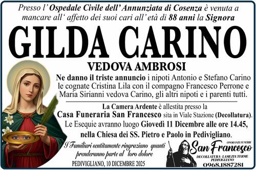 Maria Sirianni vedova Carino, gli altri nipoti e i parenti tutti.