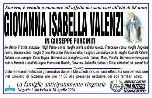 nel Cimitero di Gizzeria alle ore 11.00 alla presenza esclusiva dei soli familiari stretti.