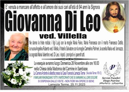 Le esequie avranno luogo Domenica 26 Novembre alle ore 16.00