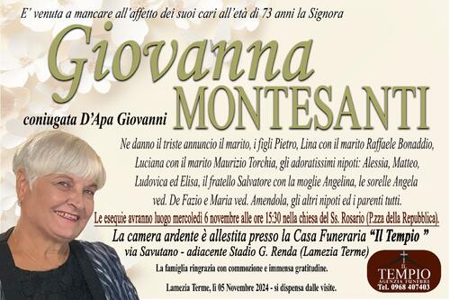 Le esequie avranno luogo mercoledì 6 novembre alle ore 15:30 nella chiesa del Ss. Rosario (P.zza della Repubblica).