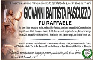 I funerali avranno luogo Venerdi 28 Novembre alle ore 15:00, muovendo dalla Casa