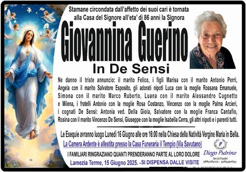 Ne danno il triste annuncio: il marito Felice, i figli Marisa con il marito Antonio Perri, Angela con il marito Salvatore Esposito, gli adorati nipoti Luca con la moglie Rossana Emanuele, Simona con il marito Marco Ruberto, Luana con il marito Alessandro Cugnetto e Milena, I fratelli Antonio con la moglie Rosa Costanzo, Vincenzo con la moglie Palma Arcieri, i cognati De Sensi: Antonia ved. Della Gioia, Salvatore con la moglie Franca Cantafio, Rosina con il marito Vincenzo De Sensi, Giuseppe con la moglie Isabella Cerra, gli altri nipoti e parenti tutti.
