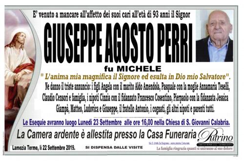 Le Esequie avranno luogo Lunedì 23 Settembre alle ore 16,00 nella Chiesa di S. Giovanni Calabria.
