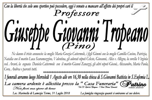 Loc. Marinella di Lamezia Terme, 31 Luglio 2018 La famiglia ringrazia quanti si uniranno al suo dolore.