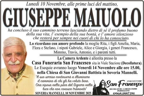 Data di Nascita: 10/03/1951 Decesso: 10/11/2025 Città: SOVERIA MANNELLI Esequie: 14/11/2025 15:00