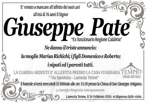 Il funerale si terrà mercoledì 25 febbraio alle ore 15:30 presso la Chiesa di San Giuseppe Artigiano.