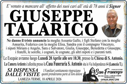 Ne danno il triste annuncio la moglie Assunta Gallo, i figli Stefano con la moglie