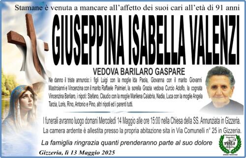 I funerali avranno luogo domani Mercoledì 14 Maggio alle ore 15:00 nella Chiesa della SS. Annunziata in Gizzeria.