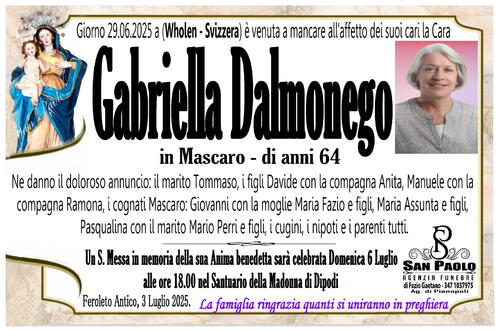 Giorno 29.06.2025 a (Wholen - Svizzera) è venuta a mancare all'affetto dei suoi cari la Cara