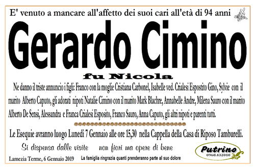 Lamezia Terme, 6 Gennaio 2019 O.F. Putrino 0968/432010
