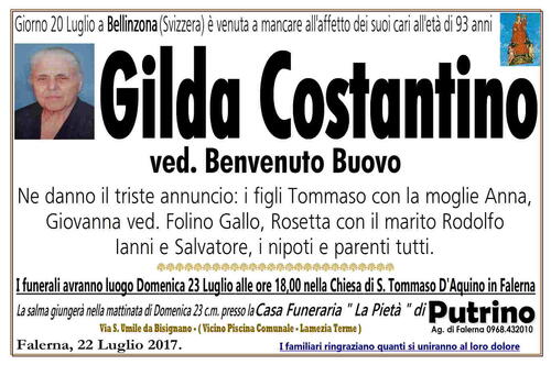 I funerali avranno luogo Domenica 23 Luglio alle ore 18,00 nella Chiesa di S. Tommaso D'Aquino in Falerna