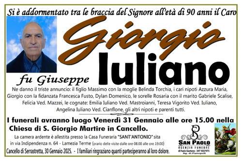 Cancello di Serrastretta, 30 Gennaio 2025. - I familiari ringraziano quanti parteciperanno al loro dolore.