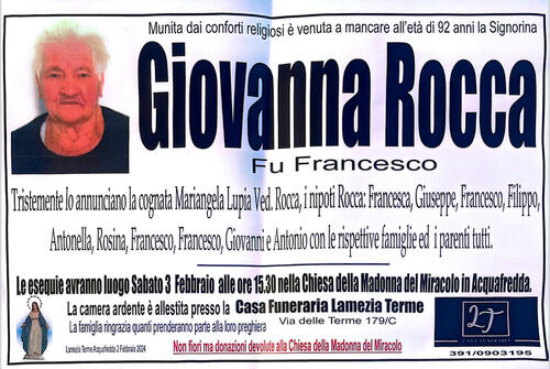 Munita dai conforti religiosi è venuta a mancare all’età di 92 anni