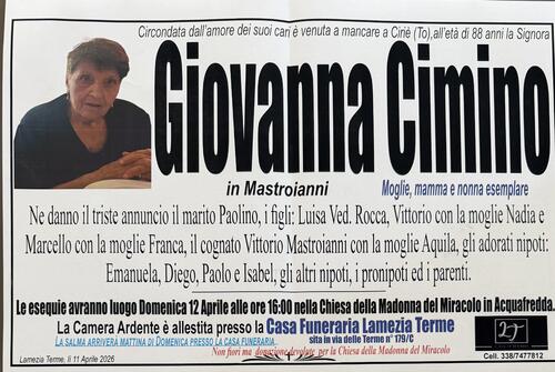 Ne danno il triste annuncio il marito Paolino, i figli: Luisa Ved. Rocca, Vittorio con la moglie Nadia e