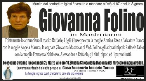 Tristemente lo annunciano il marito Raffaele, i figli: Giuseppe con la moglie Annina Raso e Salvatore Franco