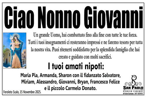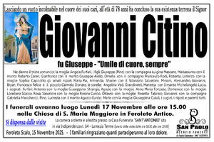 Feroleto Scalo, 15 Novembre 2025. - I familiari ringraziano quanti parteciperanno al loro dolore.