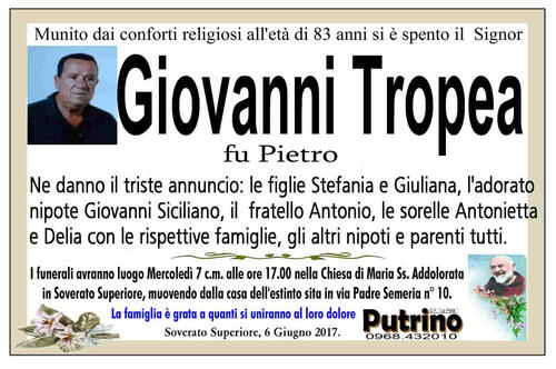 Soverato Superiore, 6 Giugno 2017. LA PIETA' PUTRINO 0968/432010
