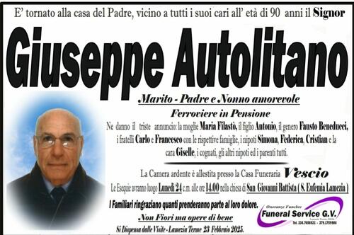Le Esequie avranno luogo Lunedi? 24 c.m. alle ore 14.00 nella chiesa di San Giovanni Battista ( S. Eufemia Lamezia )