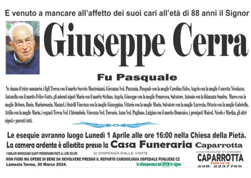 Ne danno il triste annuncio: i figli Teresa con il marito Saverio Mastroianni, Giovanna Ved. Puzzonia, Pasquale con la moglie Carolina Falvo, Angelo con la moglie Concetta Nicolazzo,Antonella con il marito Felice Gatto, gli adorati nipoti Maria con il marito Stefano, Angela, Giuseppe con la moglie Francesca, Salvatore, Antonio con la fidanzata Sandra,Marco con la moglie Debora, Ilaria, Mariarosaria, Manuel, i fratelli Vincenzo con la moglie Giuseppina, Vittorio con la moglie Maria,Salvatore con la moglie Lucrezia, Ottavio con la moglie Gabriella, Attilio con la moglie Maria, i cognati Teresa Ved. Chirumbolo, Vincenza Ved. Torcasio, Anna Ved. Pugliano, Luigina con il marito Domenico, i pronipoti Maicol, Nicolò e Marika, gli altri nipoti e parenti tutti.