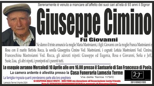 Ne danno il triste annuncio la moglie Maria Mastroianni, i figli: Giovanni con la moglie Franca Mastroianni e