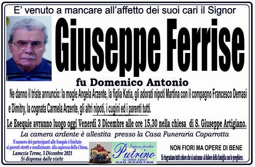 Data di Nascita: 31/01/1937 Decesso: 02/12/2021 Città: LAMEZIA TERME Esequie: 03/12/2021 15:30