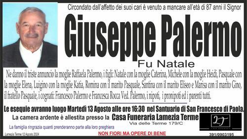 Ne danno il triste annuncio la moglie Raffaela Palermo, i figli: Natale con la moglie Caterina, Michele con la moglie Heidi, Pasquale con