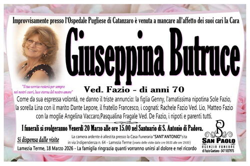 Lamezia Terme, 18 Marzo 2026 - La famiglia ringrazia quanti vorranno unirsi al dolore e nel ricordo