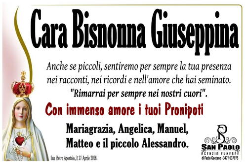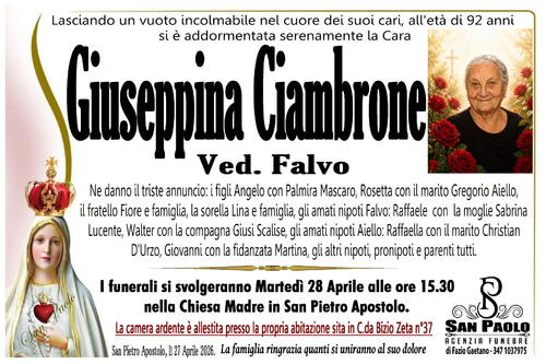 I funerali si svolgeranno Martedì 28 Aprile alle ore 15.30