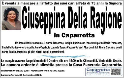 Ne danno il triste annuncio: il marito Francesco, la figlia Daniela con l’adorata nipotina Maria Francesca, il fratello Mariano con la moglie Anna Capria, la cognata Teresa Caparrotta ved. Aloe con i figli Pino e Giovanna con il marito Achille Amendola, gli altri nipoti, cugini e parenti tutti.