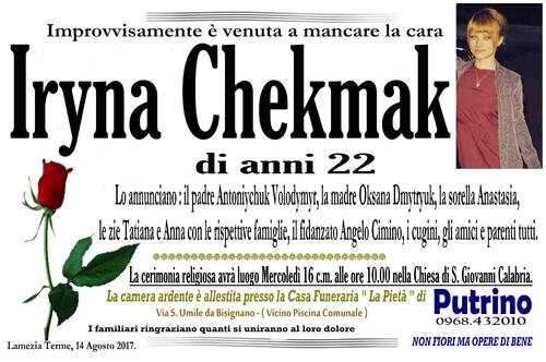 “Ciao Iryna resterai sempre nel mio cuore come la bambina sorridente che ho conosciuto :-(”