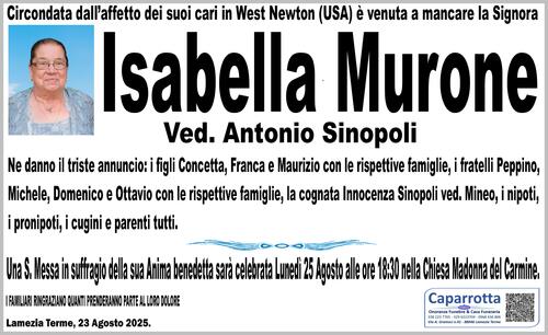 Ne danno il triste annuncio: i figli Concetta, Franca e Maurizio con le rispettive famiglie, i fratelli Peppino, Michele, Domenico e Ottavio con le rispettive famiglie, la cognata Innocenza Sinopoli ved. Mineo, i nipoti, i pronipoti, i cugini e parenti tutti.