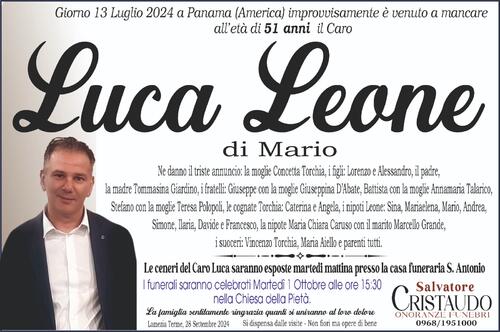 Le ceneri del Caro Luca saranno esposte martedi mattina presso la casa funeraria S. Antonio
